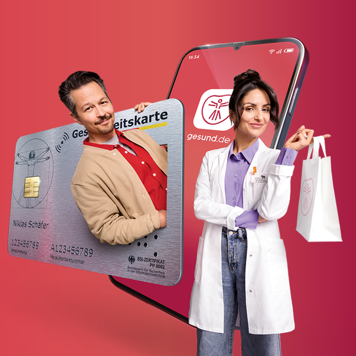 Lösen Sie bei uns mit der gesund.de App E-Rezepte digital mit Ihrer Gesundheitskarte ein. Wir können beides – digital und lokal für Sie da sein.
