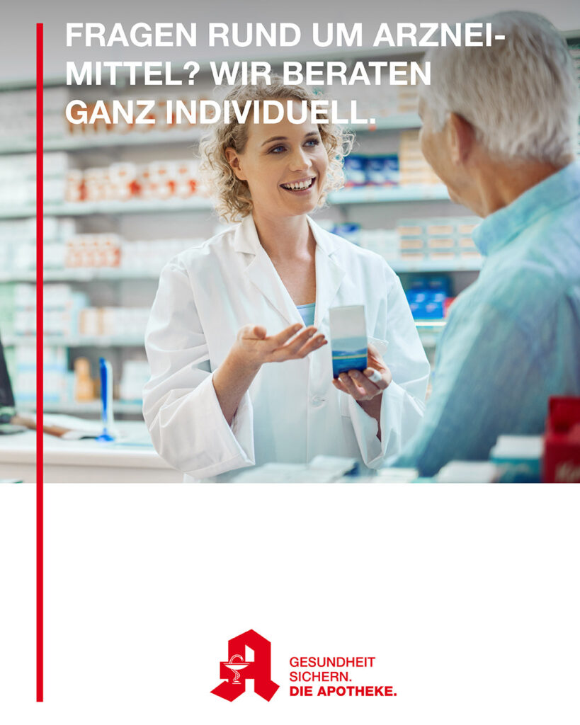 Haben Sie Fragen zu Ihrer Medikation oder suchen Sie nach der passenden Unterstützung für Ihr Wohlbefinden? Hinter unserem Motto „Fragen rund um Arzneimittel – wir beraten ganz individuell“ steht unser Versprechen an Sie: Wir nehmen uns Zeit.